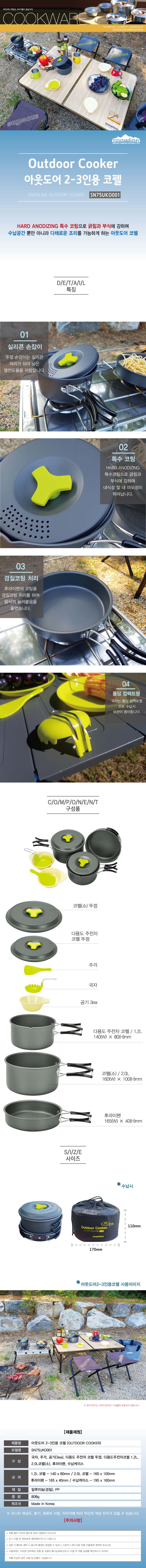 ¢º ½º³ë¿ì¶óÀÎ ¾Æ¿ôµµ¾î2-3ÀοëÄÚÆç(17)¢º ½º³ë¿ì¶óÀÎ ¾Æ¿ôµµ¾î2-3ÀοëÄÚÆç(17) Á¦Ç°Æ¯Â¡¡Ý ¶Ñ²± ¼ÕÀâÀÌ´Â ½Ç¸®ÄÜ Ã³¸®°¡ µÇ¾î ³·Àº ¿ÀüµµÀ²À» ÀÚ¶ûÇÕ´Ï´Ù.¡Ý HARD ANODIZING Ư¼öÄÚÆÃÀ¸·Î ±ÜÈû°ú ºÎ½Ä¿¡ °ÇÏ¸ç ³»½Ä¼º ¹× ³» ¸¶¸ð¼ºÀÌ ¶Ù¾î³³´Ï´Ù.¡Ý ÈĶóÀÌÆÒÀÇ ÄÚÆÃÀ» °æÁúÄÚÆÃ Ã³¸®¸¦ ÇÏ¿© À½½ÄÀÇ ´·¯ºÙÀ½À» ÁÙ¿´½À´Ï´Ù.¡Ý ±¹ÀÚ´Â Æúµù ÄÄÆÑÆ®ÇüÀ¸·Î ¼ö³³½Ã º¸°üÀÌ ¿ëÀÌÇÕ´Ï´Ù.¢º ½º³ë¿ì¶óÀÎ ¾Æ¿ôµµ¾î2-3ÀοëÄÚÆç(17) Á¦Ç°Á¦¿øÁ¦Ç°¸í : ¾Æ¿ôµµ¾î 2-3Àοë ÄÚÆç(OUTDOOR COOKER)¸ðµ¨¸í : SN75UKO001±¸ ¼º : ±¹ÀÚ, ÁÖ°Æ, °ø±â(3ea), ´Ù¿ëµµ ÁÖÀüÀÚ ÄÚÆç ¶Ñ²±,´Ù¿ëµµÁÖÀüÀÚÄÚÆç 1.2L, 2.0LÄÚÆç(¼Ò), ÈĶóÀÌÆÒ ¼ö³³ÄÉÀ̽º±Ô °Ý : 1.2 ÄÚÆç - 140 x 80mm / 2.0L ÄÚÆç - 160 x 100mm ÈĶóÀÌÆÒ - 165 x 40mm / ¼ö³³ÄÉÀ̽º - 195 x 160mmÀç Áú : ¾Ë·ç¹Ì´½(°æÁú), PPÁß ·® : 808gÁ¦Á¶±¹ : Çѱ¹